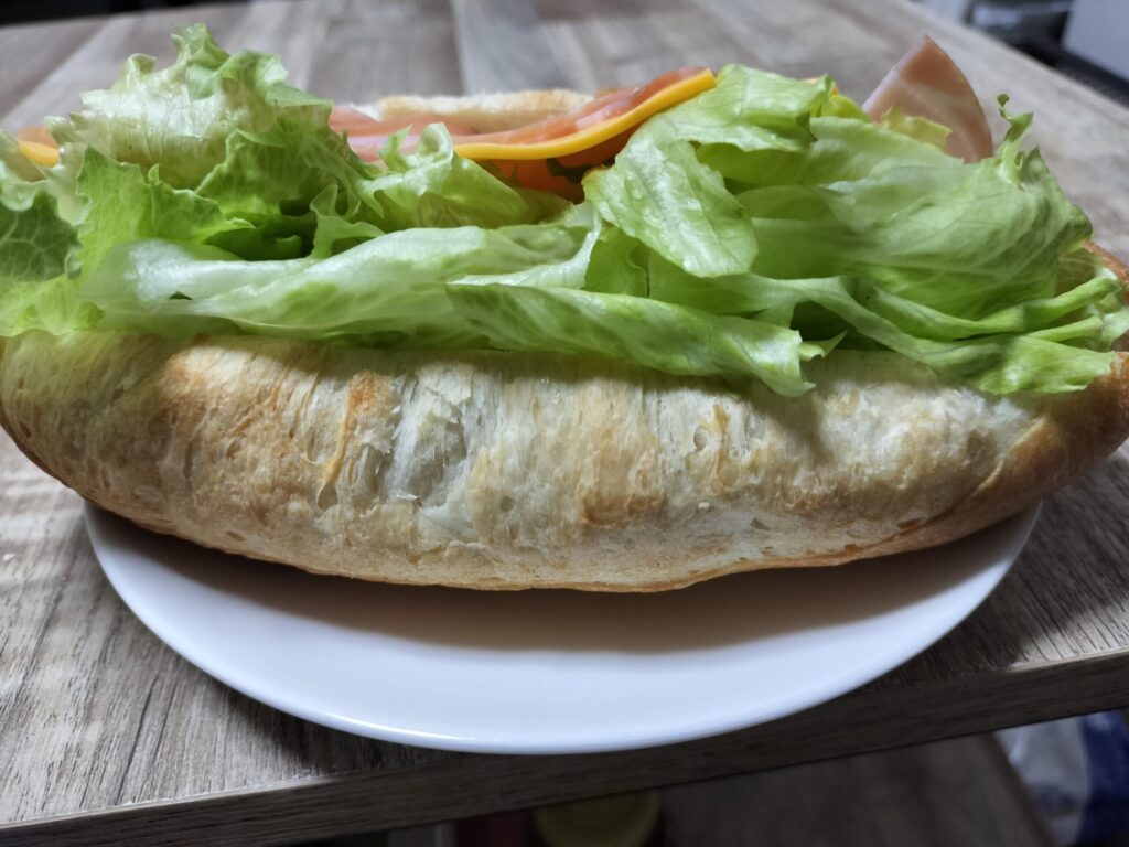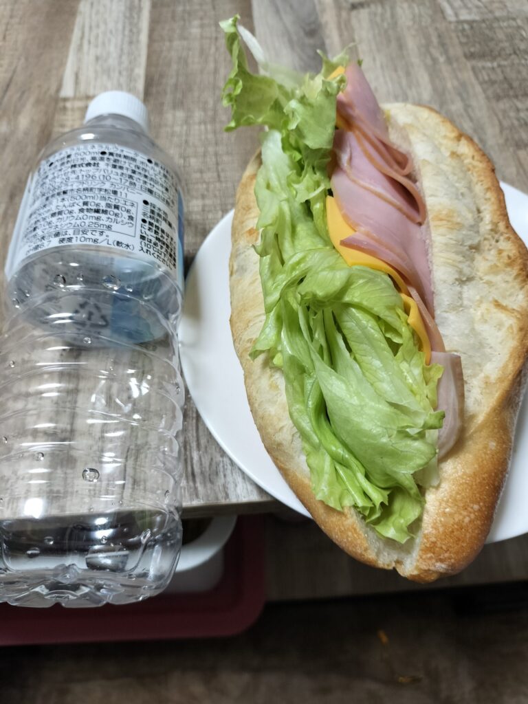 たっぷりのレタスとハムとチーズ、そこに詳しくは分からないのですがドレッシング?そして、マスタードが良いアクセントになっていて、めちゃでかですが、2,3個食べれる位の美味しさです!